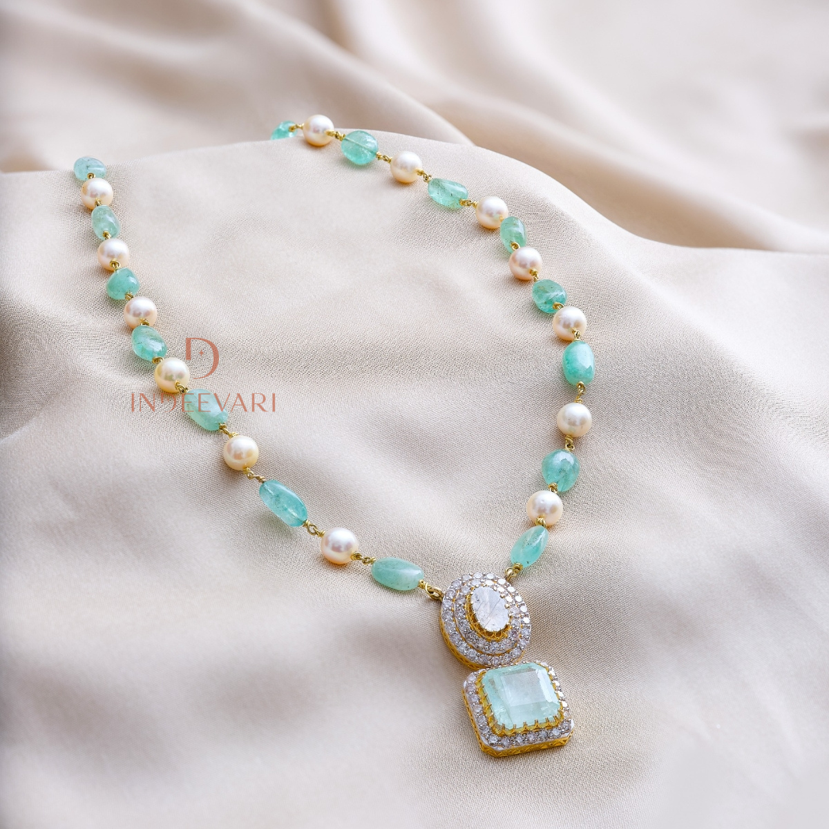 Sumalatha Diamond & Emerald Beads Necklace set
