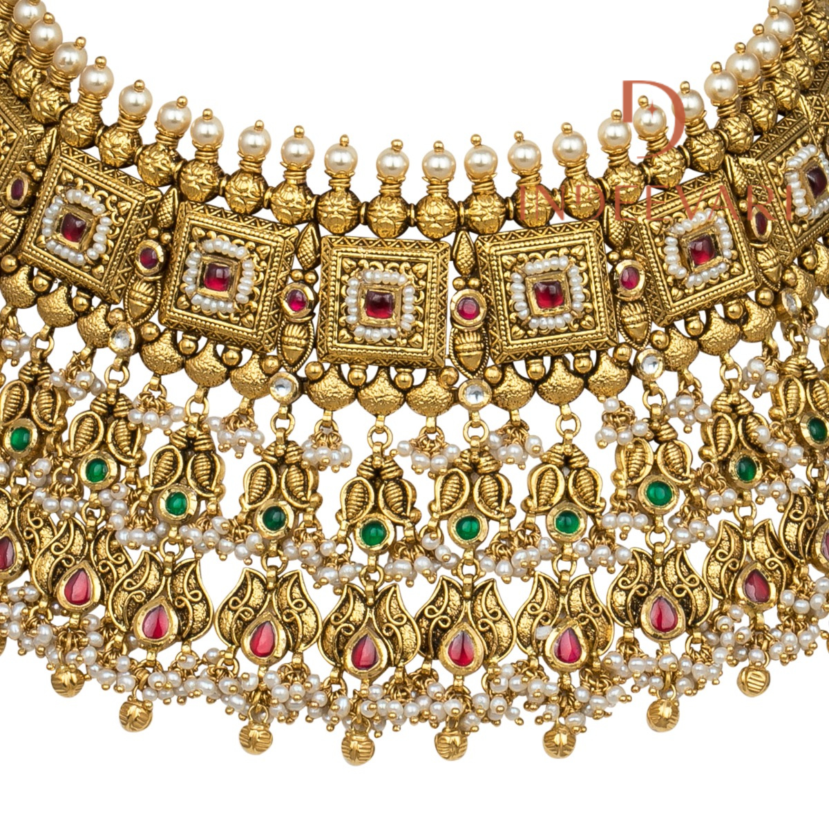 Noorani Antique Ruby, Emeralds, and Pearl Necklace