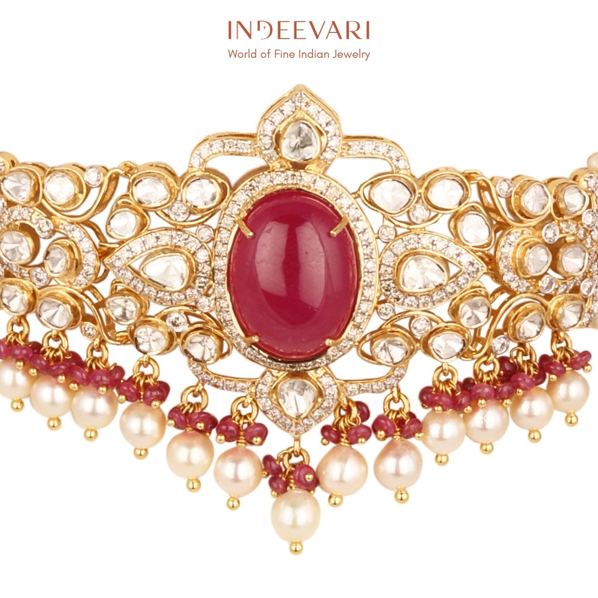 Maharani Ruby & Pearl Victorian Polki Choker Set