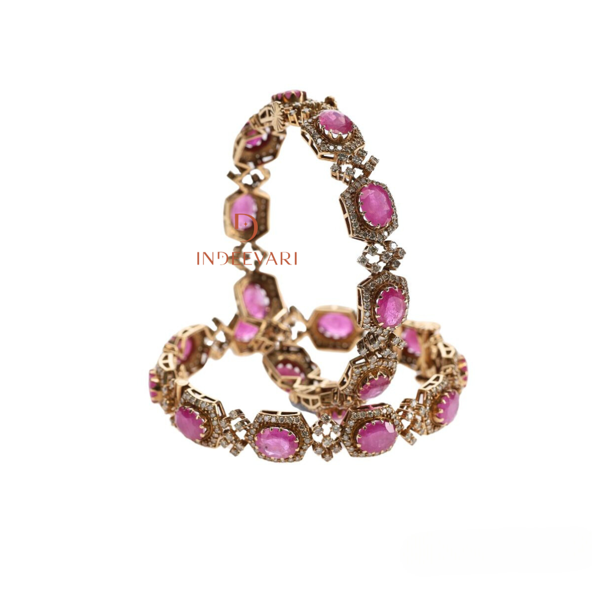 Princely Victorian Diamond Necklace set & Bangles with Mozambique Rubies