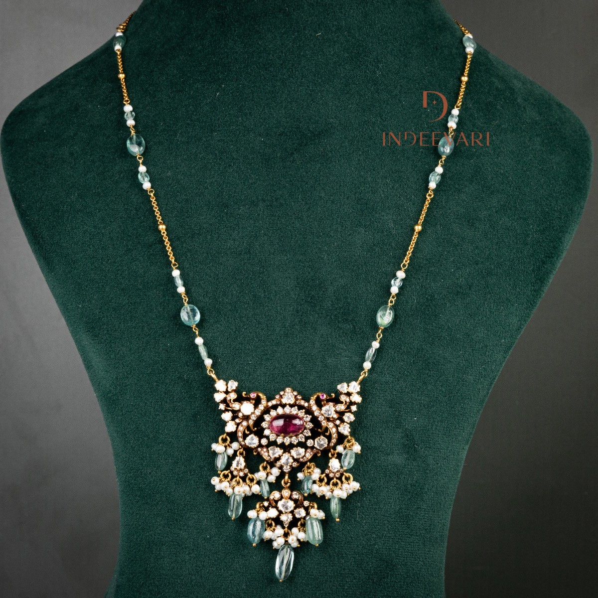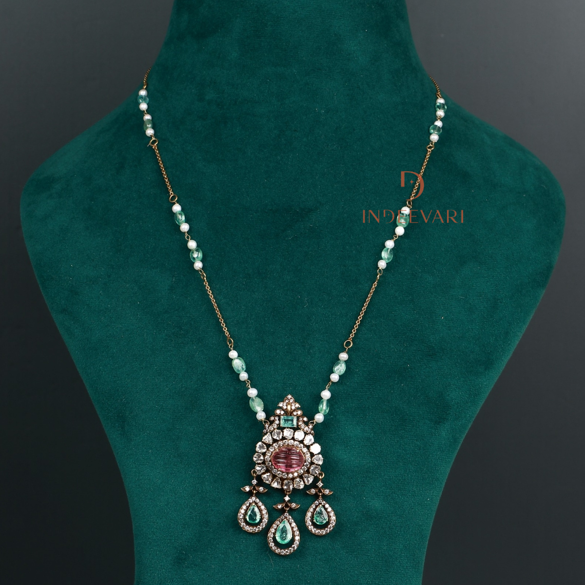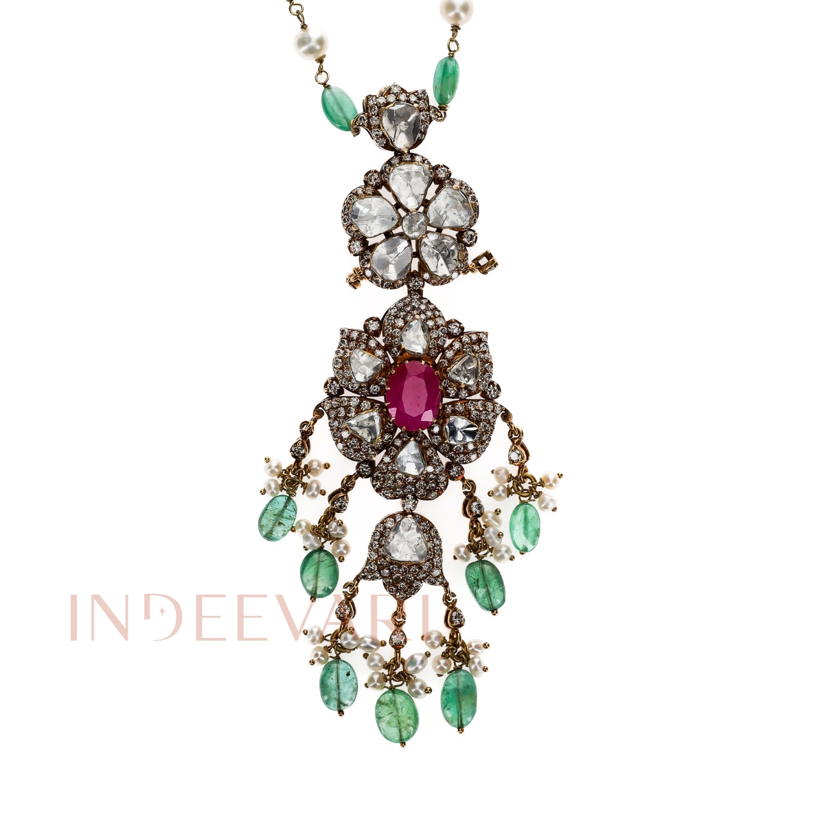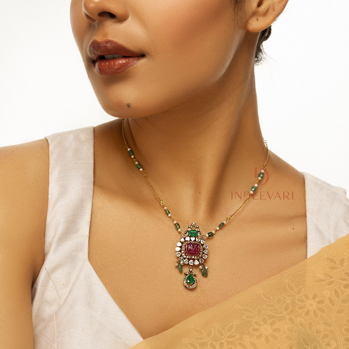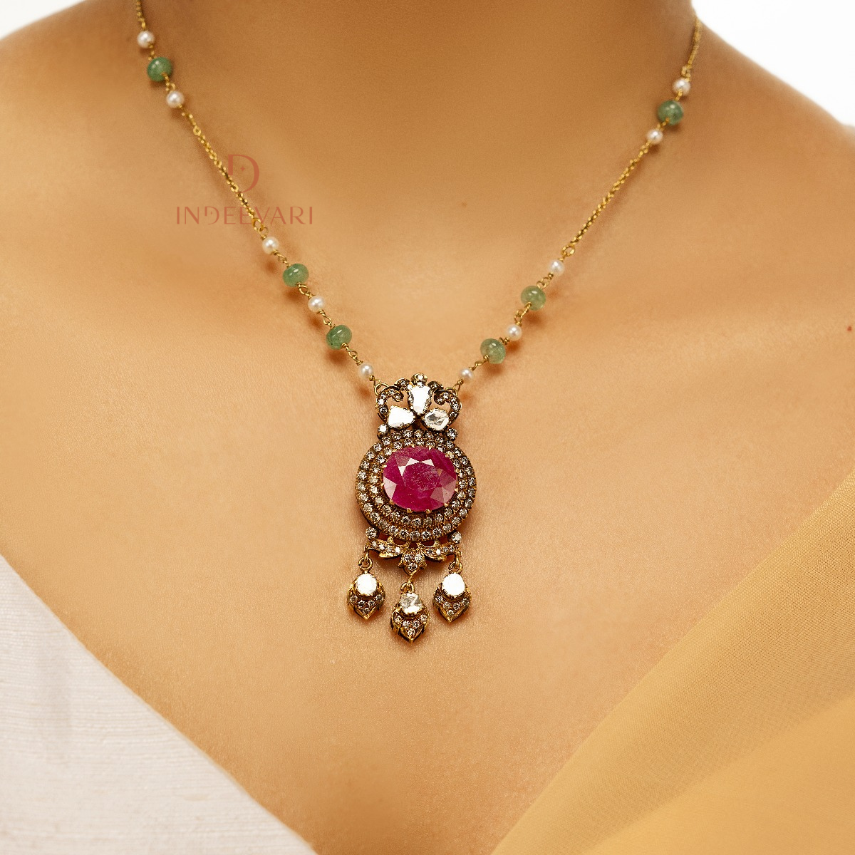 Enchanting Ruby Emerald Polki Chain