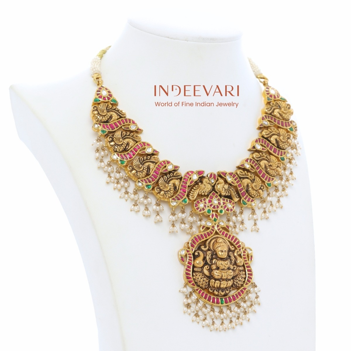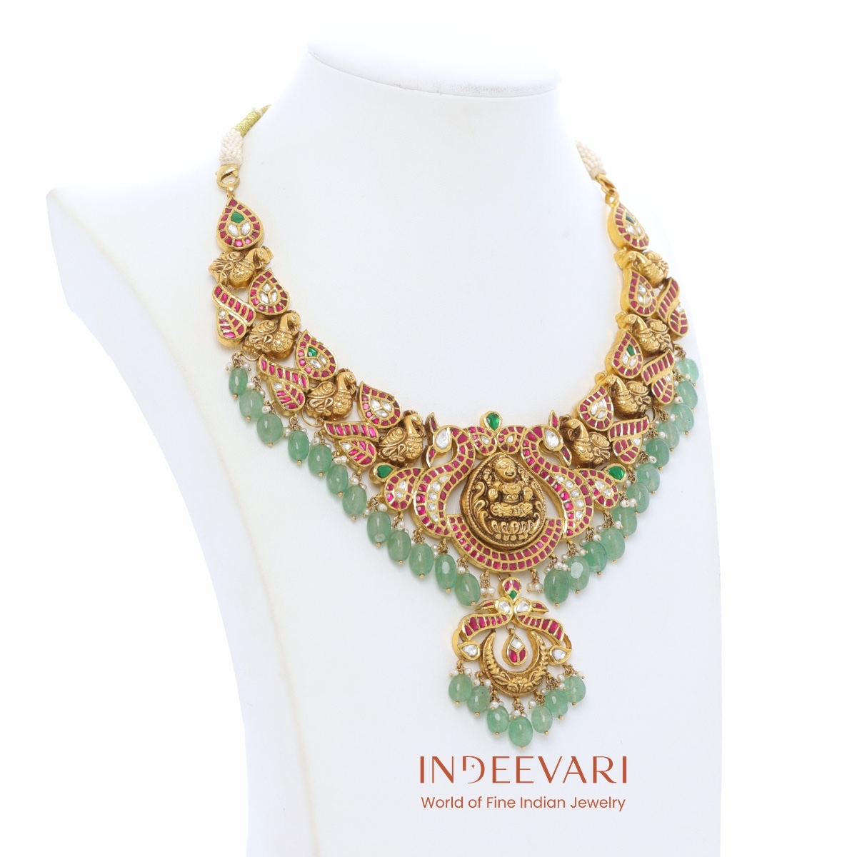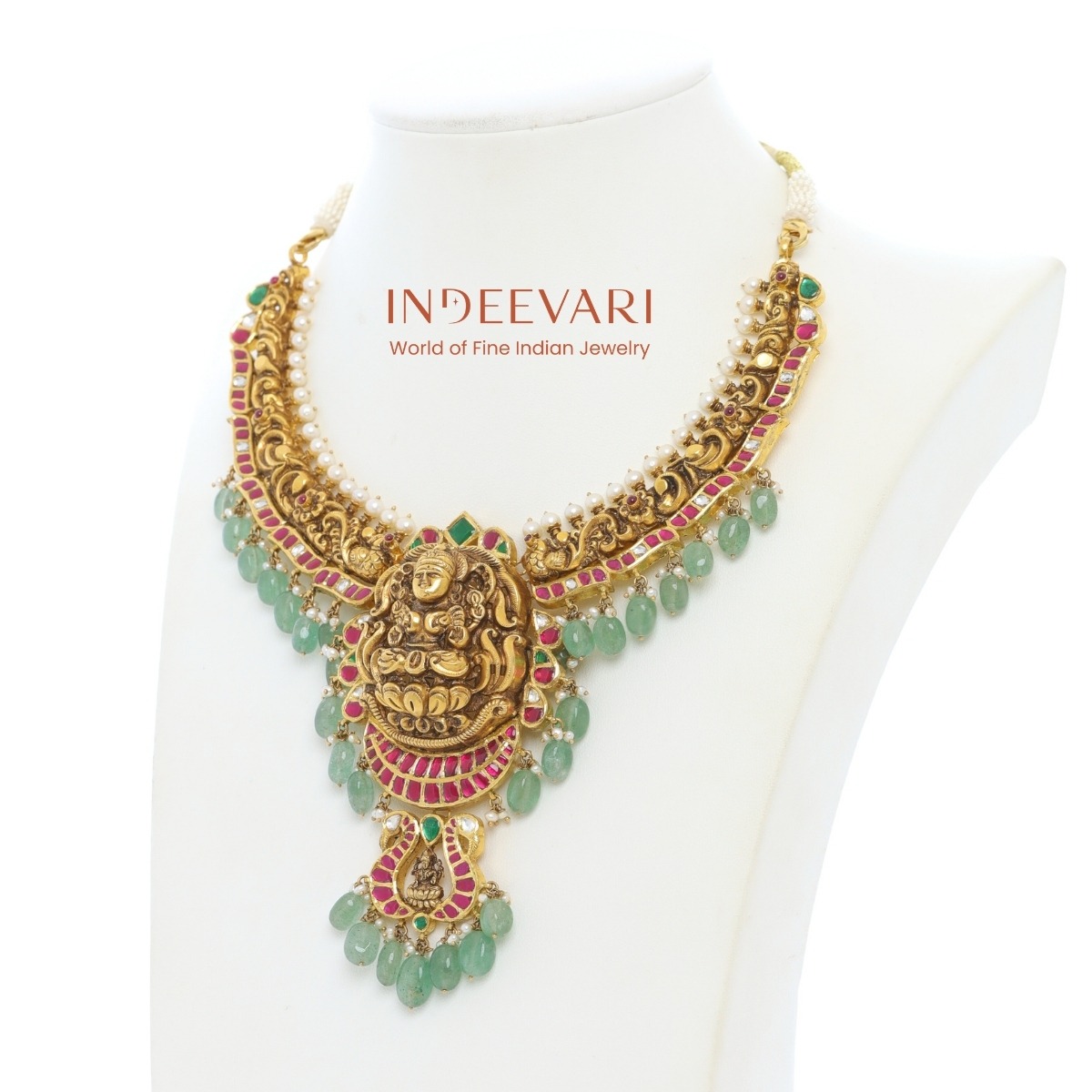 Grand Lakshmi Temple Necklace with Emerald Drops