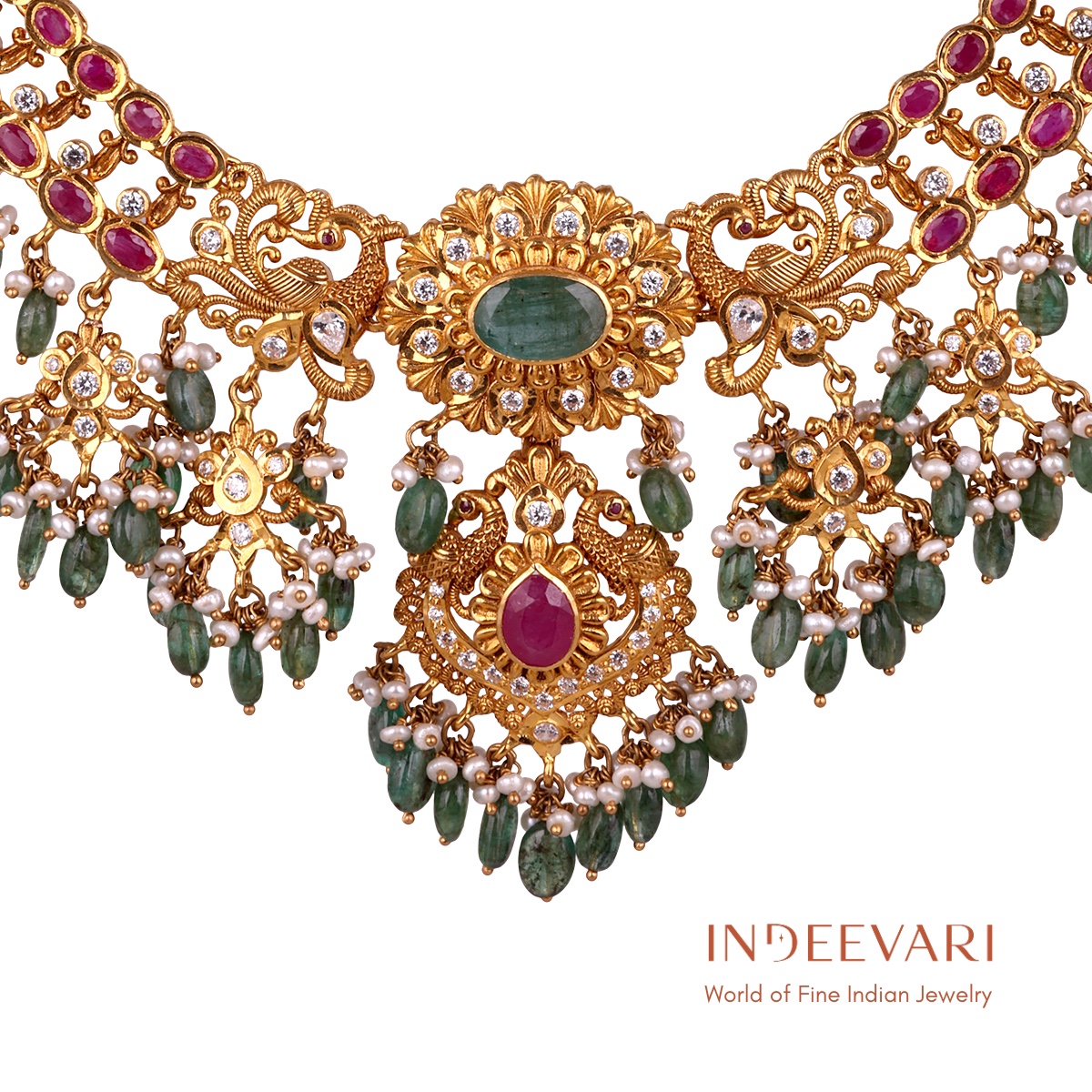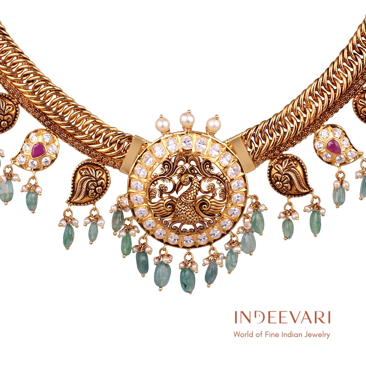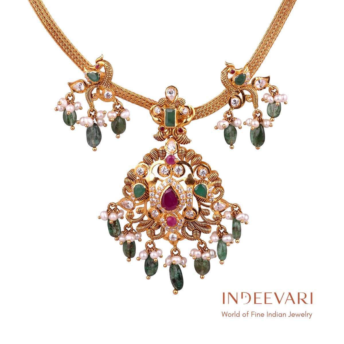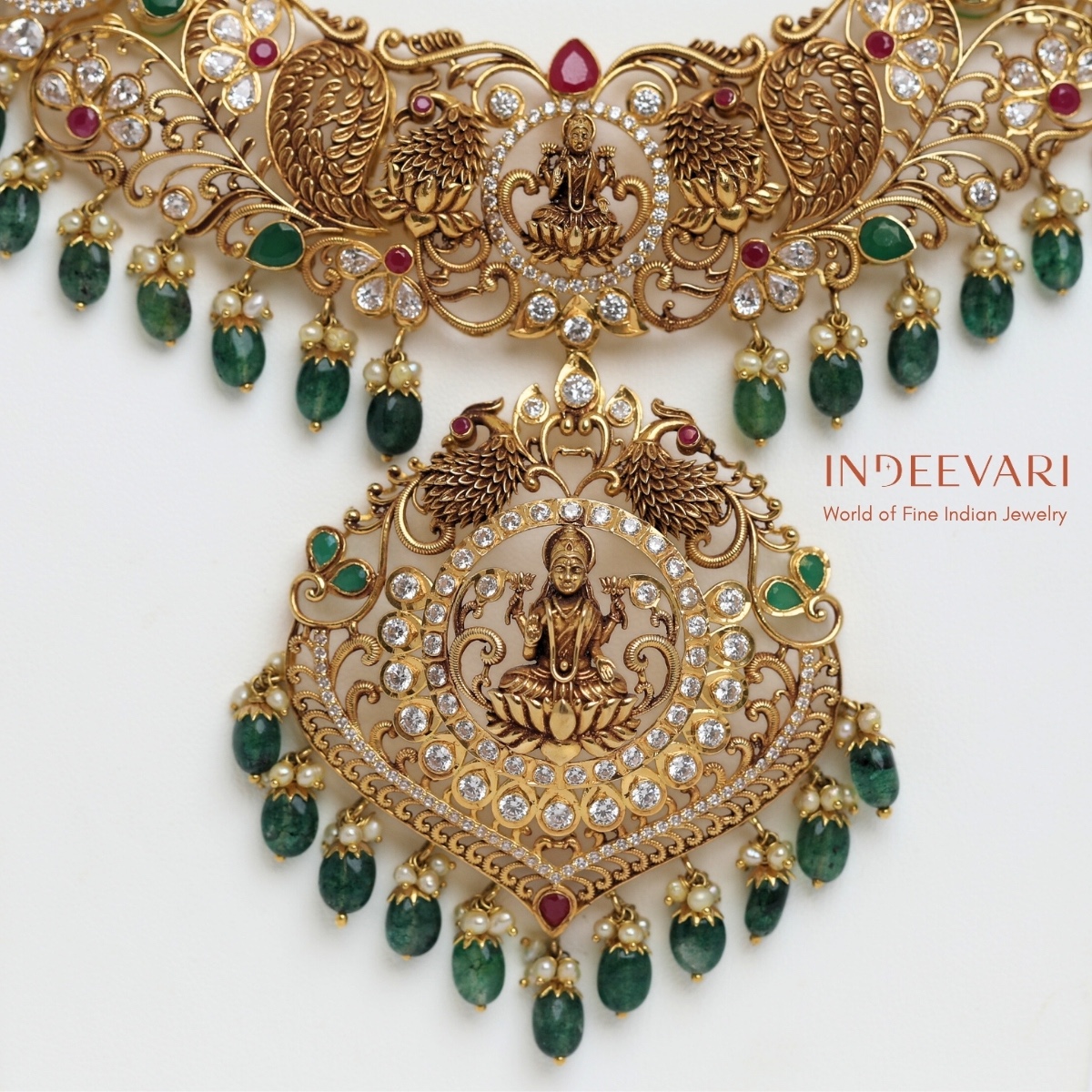 Emerald Lakshmi Pachi Necklace
