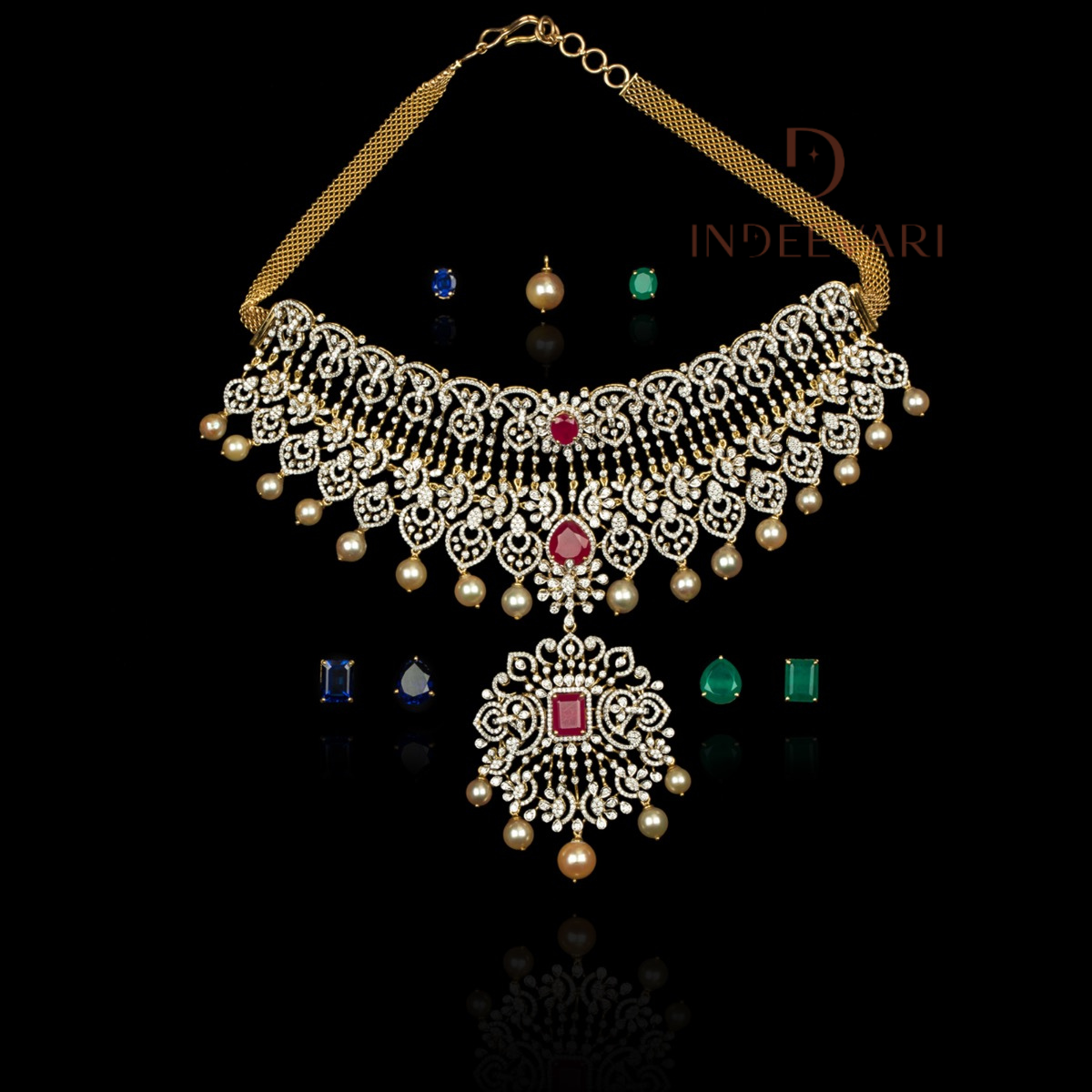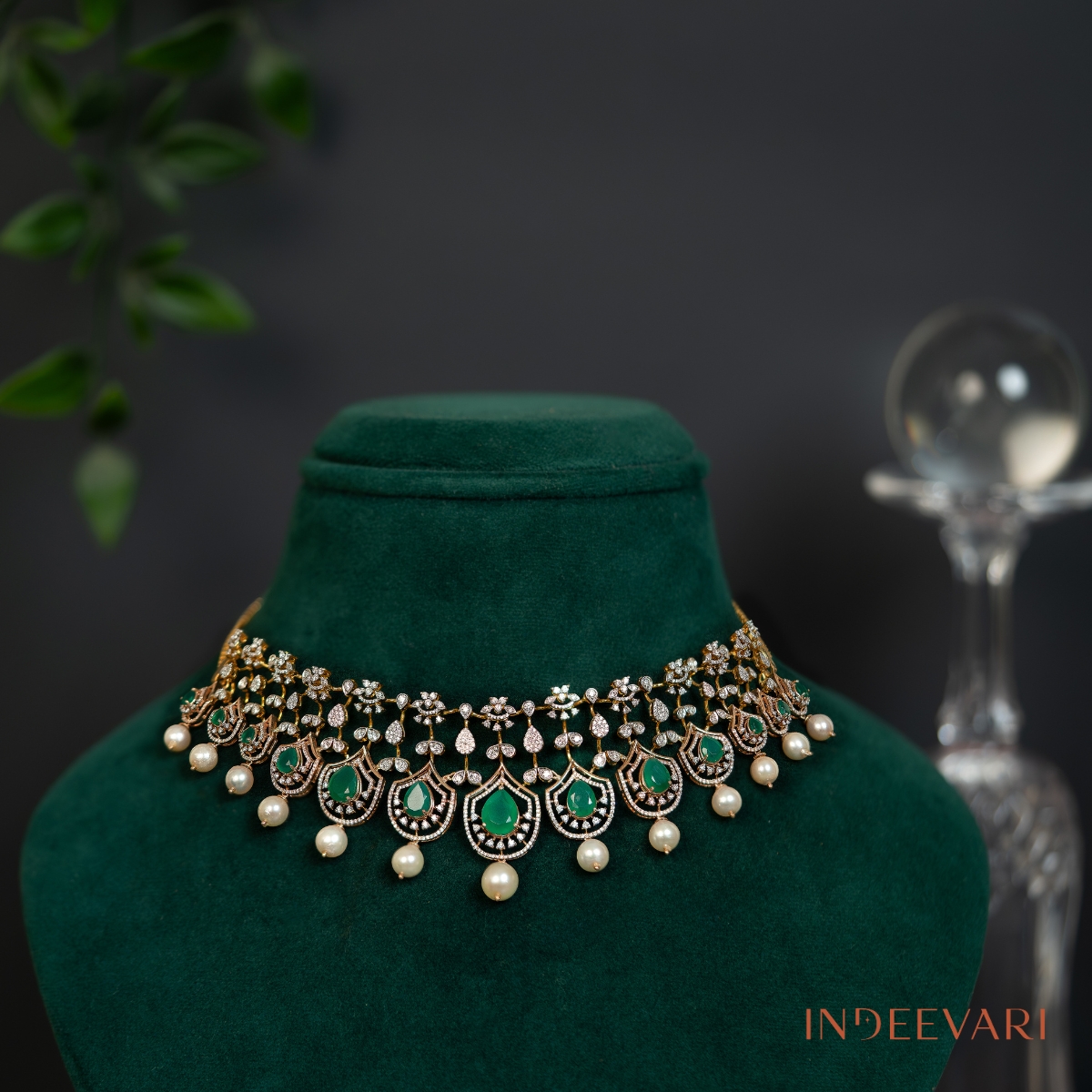 Crystal Palace Polki Diamond Necklace with Emerald & Pearl Drops