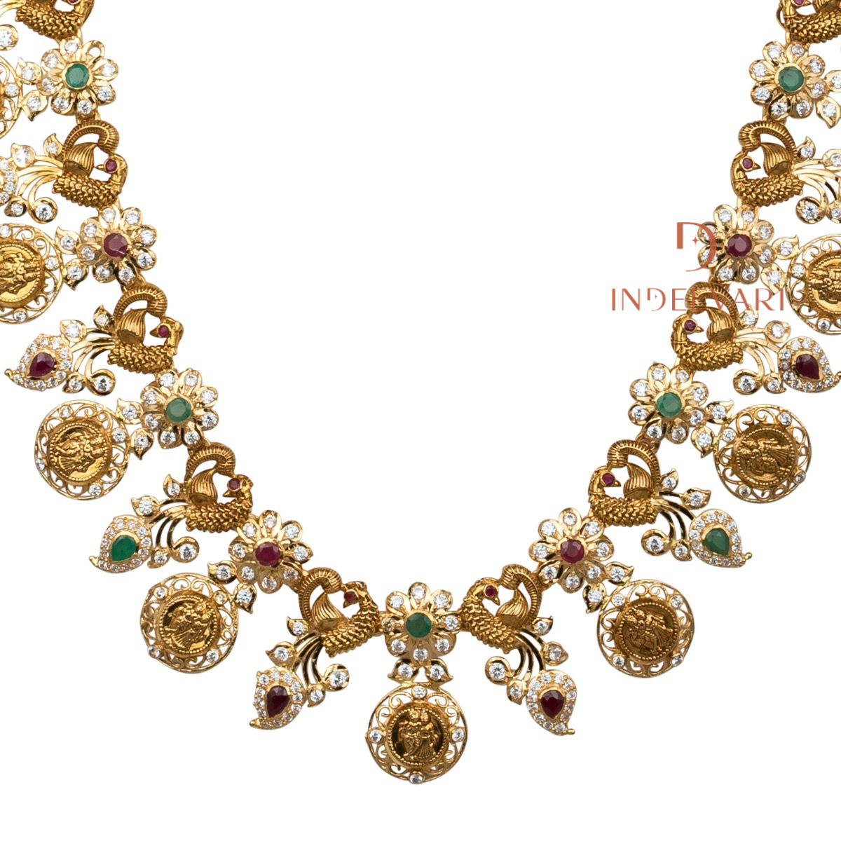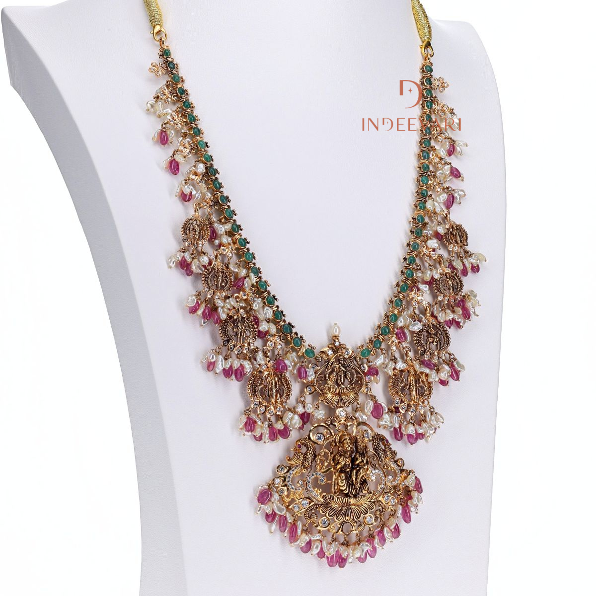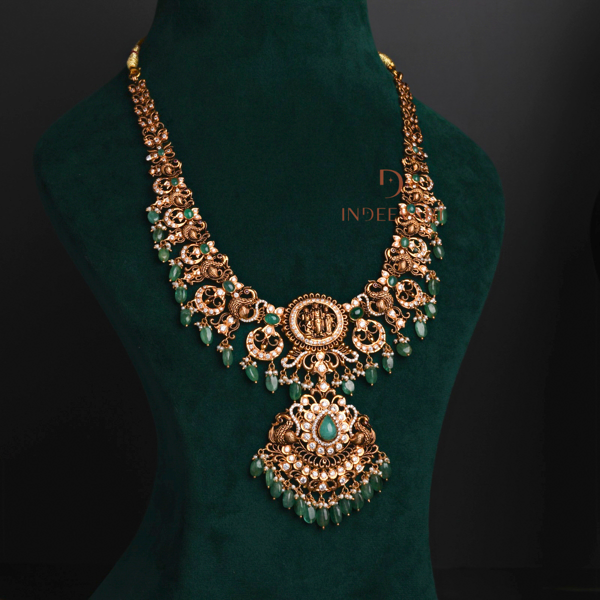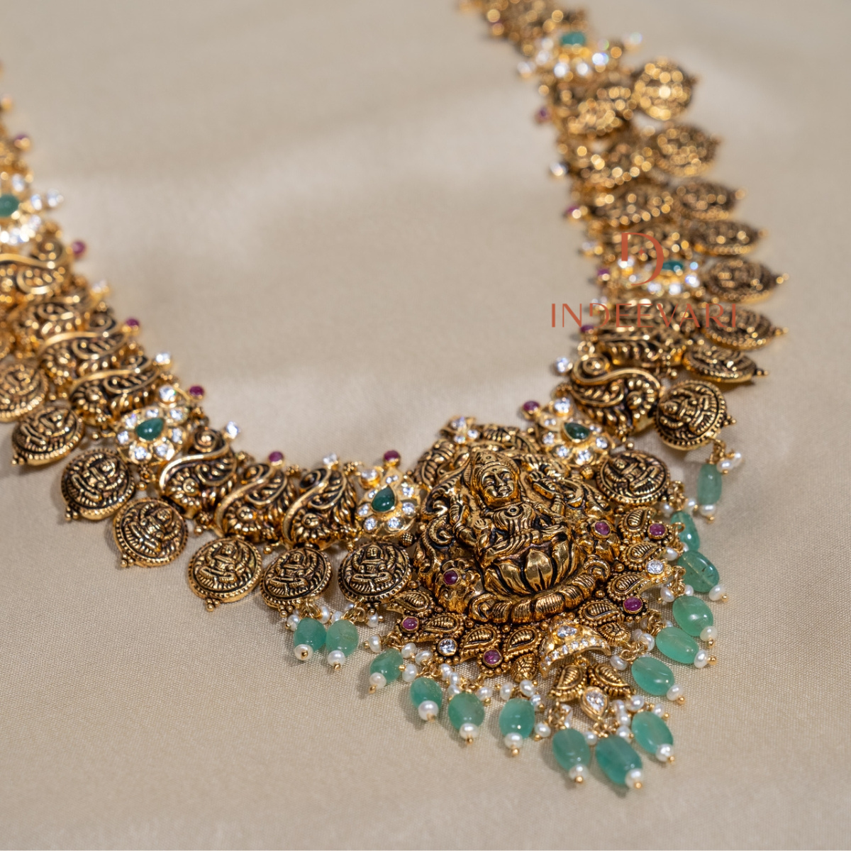 Lakshmi Emerald CZ Temple Necklace