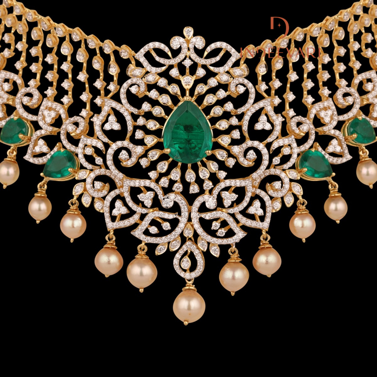 Crystal Palace Polki Diamond Necklace with Emerald & Pearl Drops