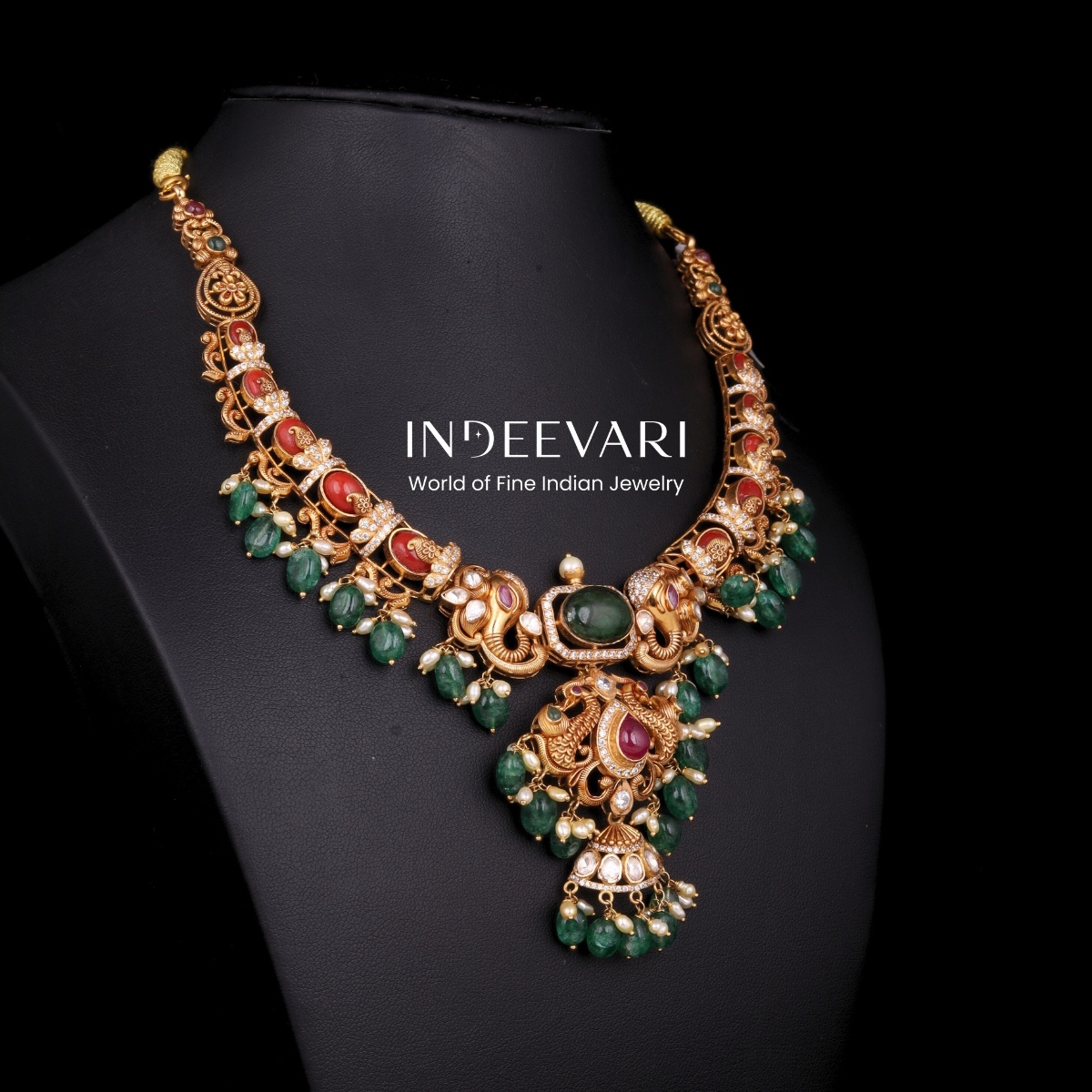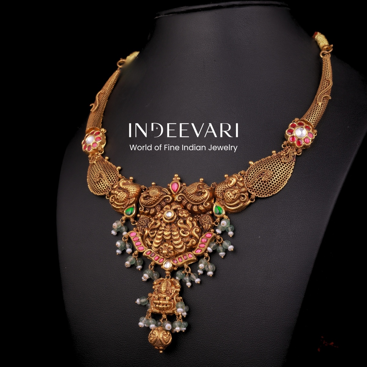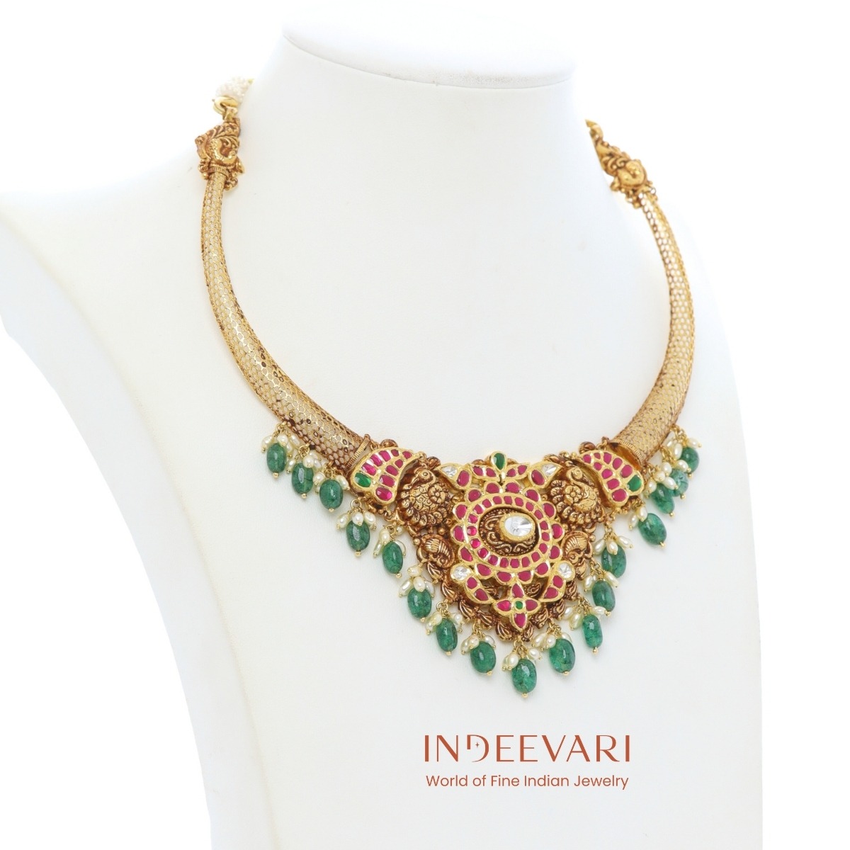 Lakshmi Temple Kanti with Kundan & Emerald Drops