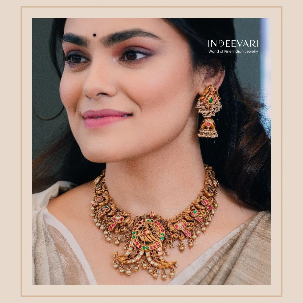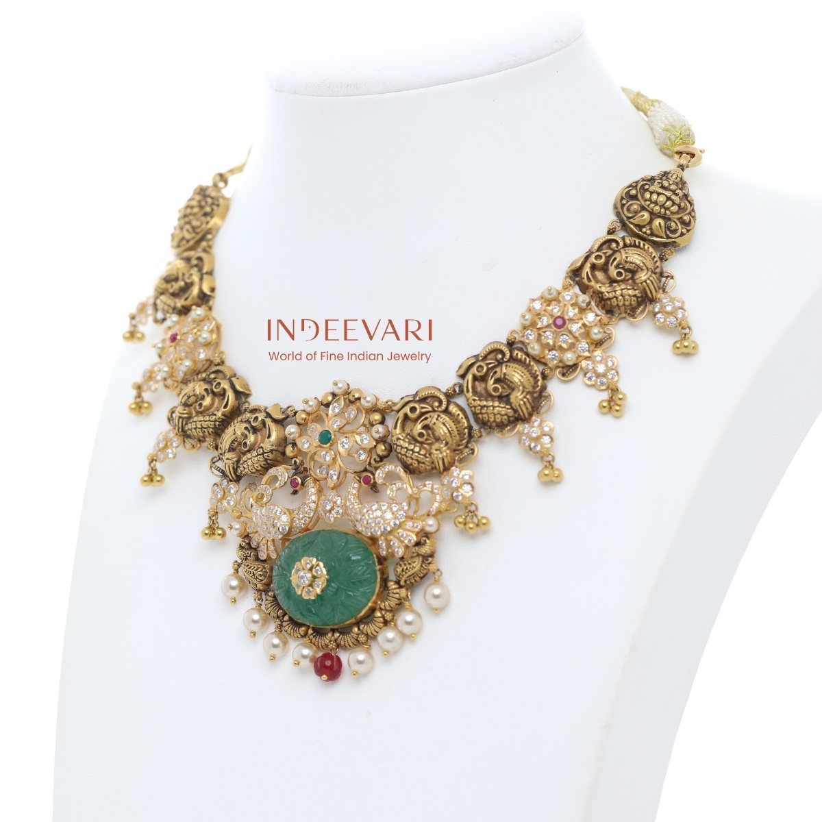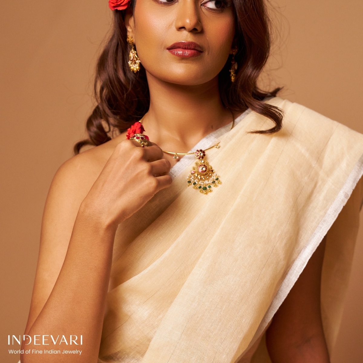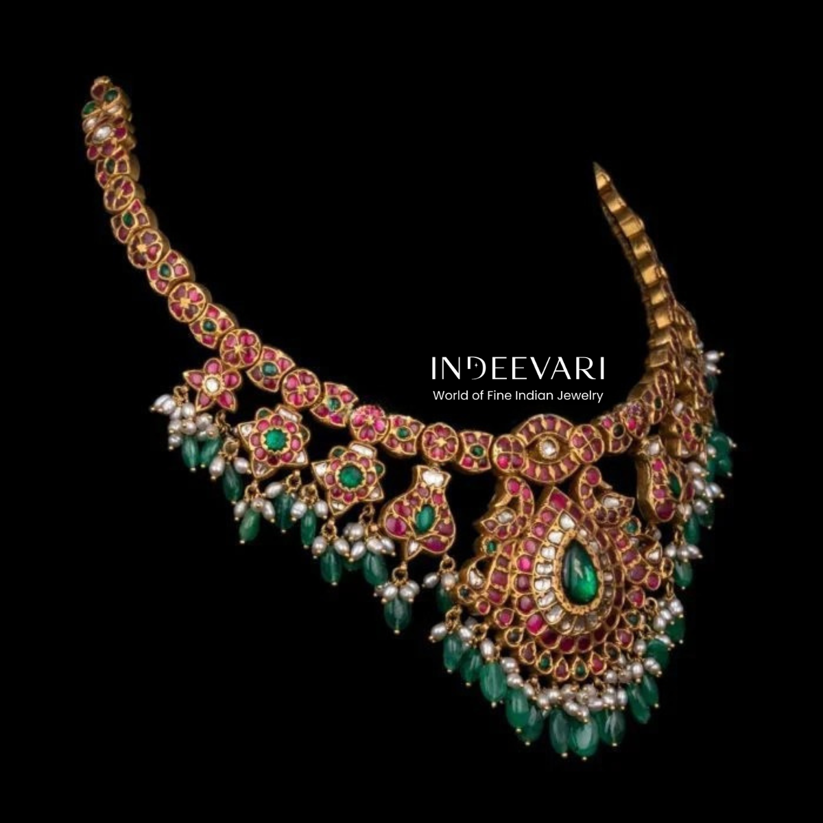 Lakshmi Temple Kanti with Kundan & Emerald Drops